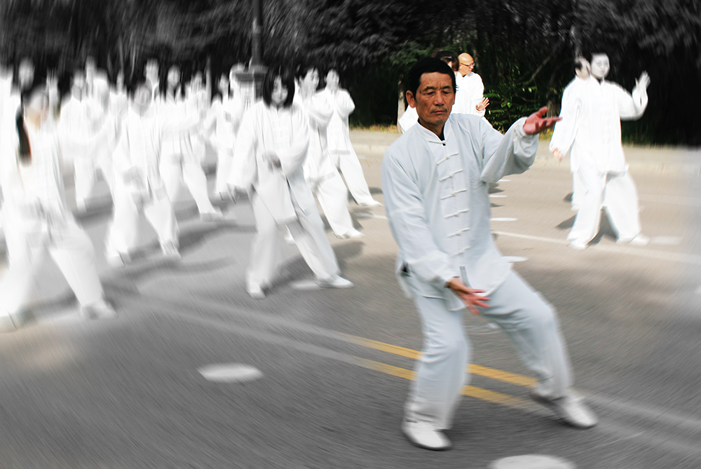 展演中,随着舒缓的崆峒太极拳28式音乐,50多名参演人员身着白色太极拳服装组成方队,太极爱好者们由静而动,表演动作整齐一致,一招一式,刚柔相济,整个展演现场气势恢弘。