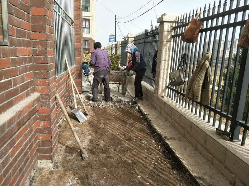 由于去年冬季温度过低,惠民花园楼宇部分散水出现裂缝、沉降等问题,近日,物管站积极与施工单位衔接维修。目前,9、10号楼维修工作已基本结束。